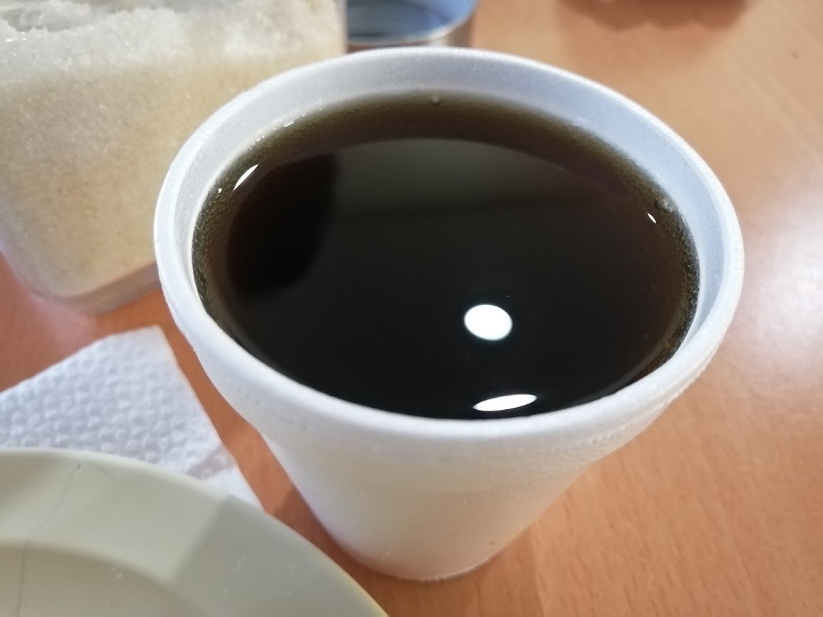 Una pequeña dosis de cafeina no basta, realmente decepcionado del cafecito. No es raro que un café en un lugar que no es especializado en la preparacion del mismo nunca sea de la merjor calidad, sabor o gusto, pero una panaderia deberia tener un standard mas alta que un comedor, terminamos tomando dos cafes “ralos” acompañados de pan dulce de muy buena calidad. Personalmente creo que un café de cora de la calle tiene mejor gusto, obviamente que no se puede esperar mucho por un cafecito de 0.40 pero no se espera que un agua teñida sin sabor sea la oferta.